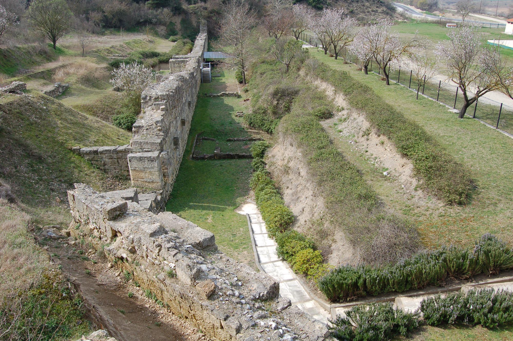 Κατά τους παλαιοχριστιανικούς χρόνους, η Αμφίπολη περιορίστηκε στο μέσο της αρχαίας πόλης, στον χώρο της αρχαίας ακρόπολης, έκτασης 400 στρεμμάτων. Την προστασία της διασφάλιζε ένας οχυρωματικός περίβολος 2.200 μ. περίπου, κατασκευασμένος στο μεγαλύτερο τμήμα του από προγενέστερα αρχιτεκτονικά μέλη. Κατά διαστήματα ενισχύεται με τετράπλευρους πύργους και έναν κυκλικό στη βορειοανατολική γωνία.