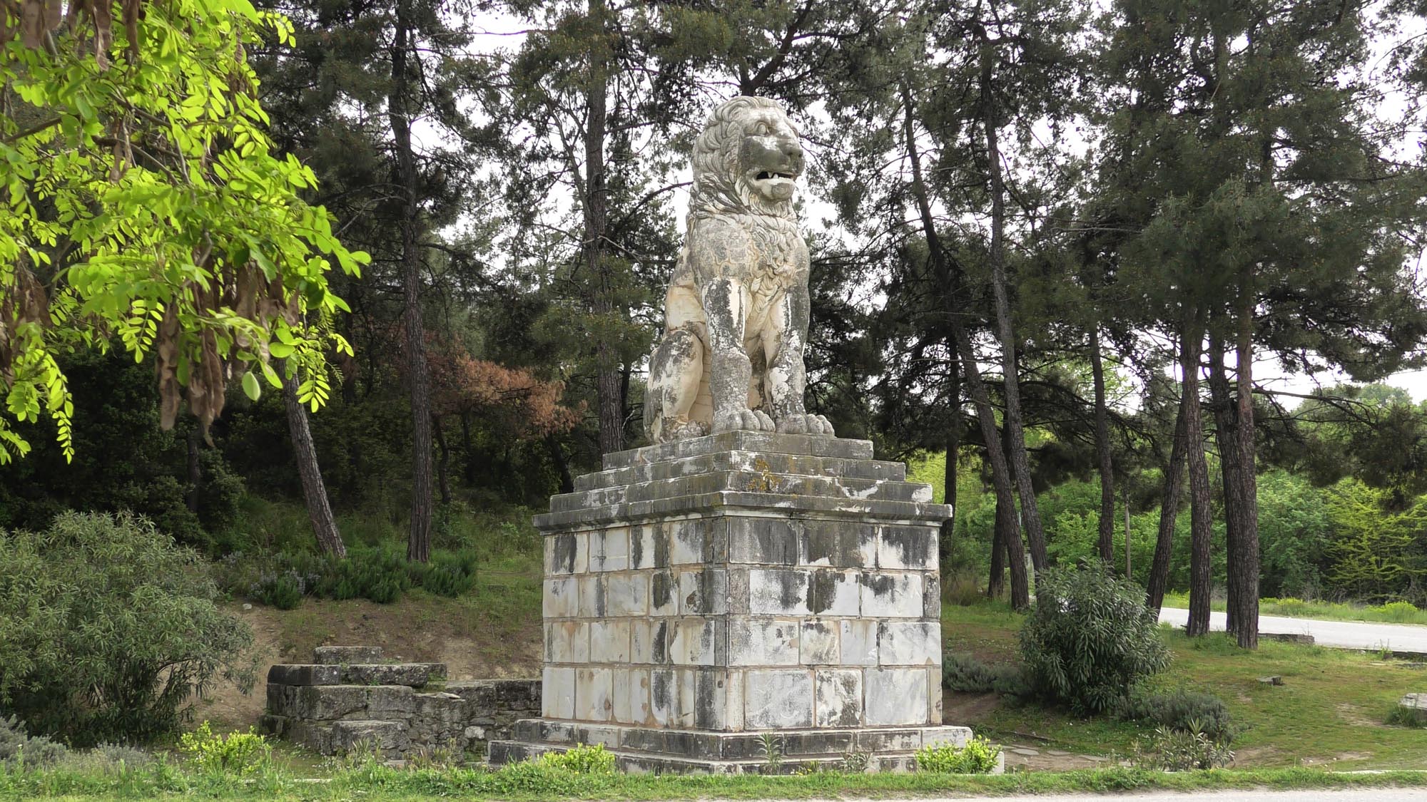 Σήμα κατατεθέν για την περιοχή των Σερρών, το επιτύμβιο μνημείο, που απεικονίζει έναν λέοντα καθισμένο στα πίσω του πόδια, στέκει σήμερα στη δυτική όχθη του Στρυμόνα, δίπλα στην Επαρχιακή οδό που ενώνει την Αμφίπολη με τη Σερραϊκή Ακτή. Με ύψος 5,30 μ., είναι ένα από τα πιο επιβλητικά γλυπτά του τέλους του 4ου αιώνα π.Χ. Τμήματα του υπερμεγέθους λέοντα είχαν βρεθεί από Έλληνες στρατιώτες το 1912, στη συνέχεια από Άγγλους στρατιώτες το 1916 και, τέλος, κατά τα έτη 1930-1931, κατά τη διάρκεια των μεγάλων αποστραγγιστικών έργων από την εταιρεία Monks-Ulen, που εξυγίαναν την πεδιάδα των Σερρών και δημιούργησαν τη λίμνη της Κερκίνης. Η σημερινή βάση του μνημείου, που αναστηλώθηκε το 1936, δεν είναι η αρχική. Όπως έχει υποστηριχθεί πρόσφατα, ο λέοντας αρχικά ήταν τοποθετημένος στην κορυφή του λόφου Καστά, άποψη, ωστόσο, που δεν γίνεται ευρύτερα αποδεκτή.