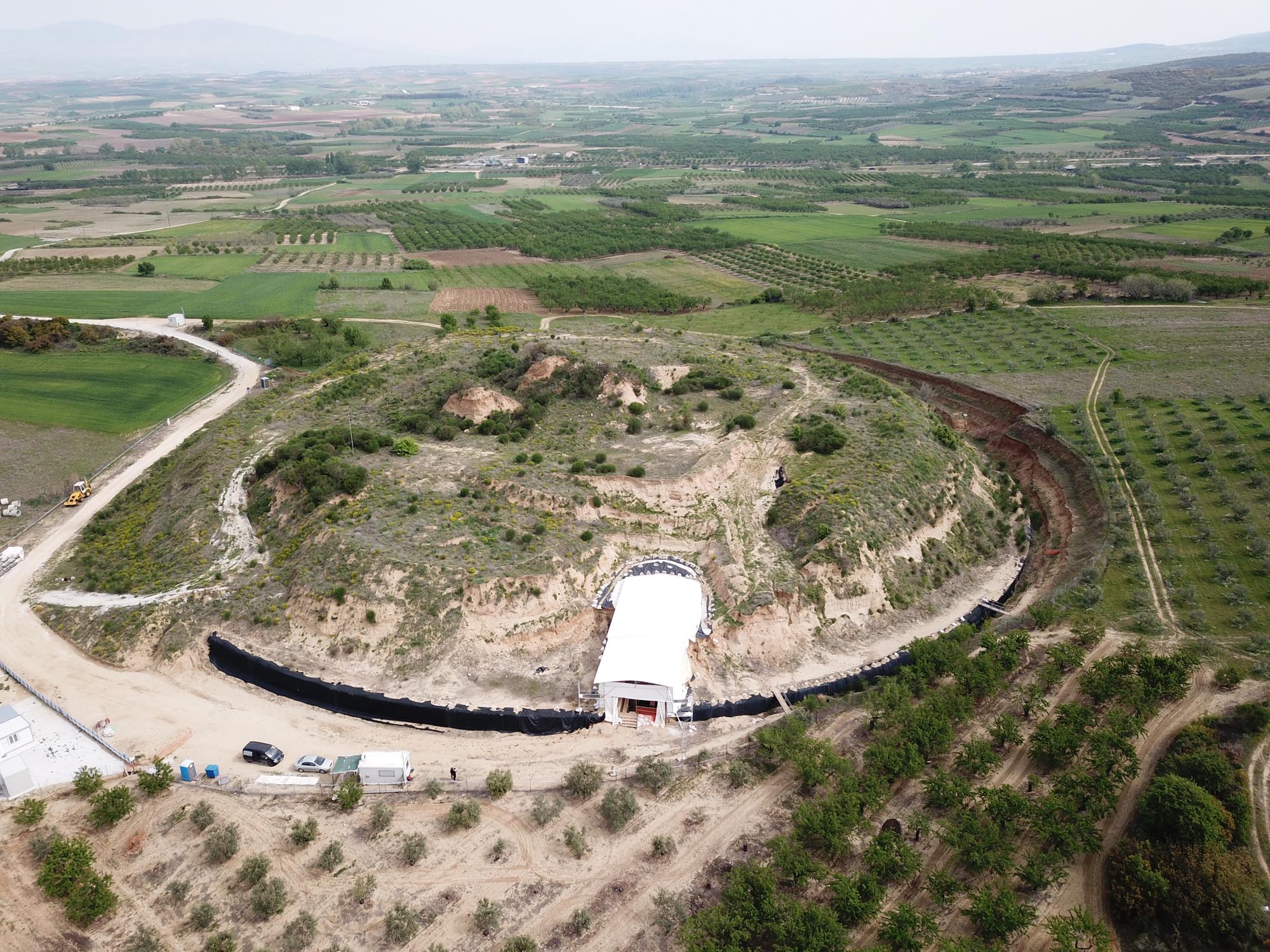 Βρίσκεται στα βορειοανατολικά της Αμφίπολης, σε μικρή απόσταση έξω από τα βόρεια τείχη της. Η ανασκαφική έρευνα, που πραγματοποιήθηκε μεταξύ 2011 και 2014, προσελκύοντας το ενδιαφέρον της διεθνούς επιστημονικής κοινότητας και του κοινού, έφερε στο φως γύρω από ολόκληρη την περίμετρο του λόφου έναν μνημειώδη ταφικό περίβολο, ύψους 3 μ. και περιμέτρου 597 μ., κατασκευασμένο εξολοκλήρου από μάρμαρο Θάσου. Η έκτασή του αντιστοιχεί σε περίπου 20 στρέμματα, που είναι η μεγαλύτερη που έχει ανακαλυφθεί σε ταφικό μνημείο της Ελλάδας. Εσωτερικά του περιβόλου, στο νότιο τμήμα του, αποκαλύφθηκε ένας μοναδικός σύνθετος μακεδονικός τάφος, μήκους 24,00 μ., πλάτους 4,50 μ. και ύψους 6,00 μ. μέχρι την καμάρα στέγασής του, η οποία καλύπτει ολόκληρο το μνημείο. Ο τάφος αποτελείται συνολικά από τέσσερις χώρους, συνυπολογίζοντας τον χώρο της εισόδου, στην οποία οδηγεί μνημειώδης κλίμακα με 16 βαθμίδες. Το υπέρθυρο του πρώτου διαφραγματικού τοίχου κοσμείται με δύο ολόγλυφες Σφίγγες από μάρμαρο Θάσου, ενώ το υπέρθυρο του δεύτερου διαφραγματικού τοίχου στηρίζουν δύο συμφυείς σε πεσσούς μαρμάρινες καρυάτιδες. Το δάπεδο του θαλάμου πίσω από τον πρώτο διαφραγματικό τοίχο κοσμεί βοτσαλωτό δάπεδο με γεωμετρικά θέματα (ορθογώνια και ρόμβους), ενώ το δάπεδο του θαλάμου πίσω από τον τοίχο με τις καρυάτιδες καλύπτεται με βοτσαλωτό δάπεδο που απεικονίζει την Αρπαγή της Περσεφόνης. Στον κυρίως ταφικό θάλαμο αποκαλύφθηκε μεγάλος κιβωτιόσχημος τάφος, με λιγοστά κτερίσματα, καθώς αυτός είχε συληθεί ήδη από τους αρχαίους χρόνους. Αναλύσεις των σκελετικών καταλοίπων έδειξαν ότι στον τάφο ήταν θαμμένα πέντε τουλάχιστον άτομα. Για τη χρονολόγηση του τάφου έχουν διατυπωθεί διάφορες απόψεις μεταξύ των ερευνητών. Σύμφωνα με την ανασκαφέα, Κατερίνα Περιστέρη, ο τάφος χρονολογείται στο τελευταίο τέταρτο του 4ου αιώνα π.Χ. και πιθανότατα κατασκευάστηκε κατά παραγγελία του Μεγάλου Αλεξάνδρου για τον νεκρό στρατηγό Ηφαιστίωνα, με αρχιτέκτονα τον Δεινοκράτη.