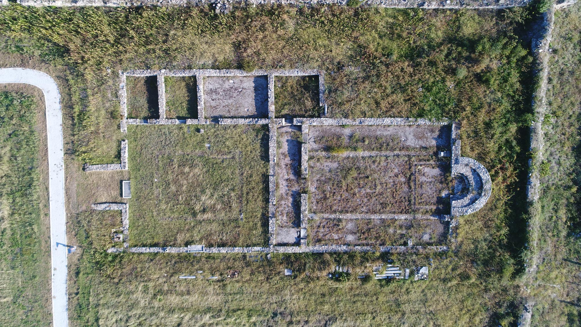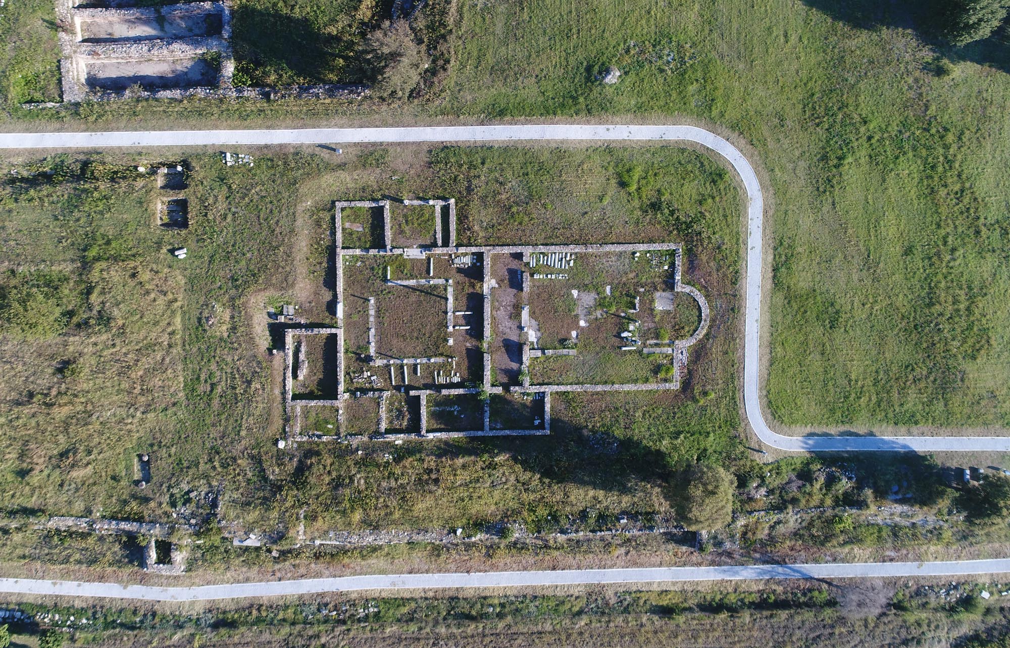 Οι ανασκαφές έχουν φέρει ακόμη στο φως τα κατάλοιπα ενός μεγάλου ορθογώνιου κτηρίου στα ανατολικά της Βασιλικής Α που ερμηνεύεται ως επισκοπικό μέγαρο. Στη νοτιοδυτική γωνία του αναπτύσσονται τρία επιμήκη ορθογώνια διαμερίσματα, που πιθανότατα αποτελούσαν δεξαμενές, καθώς οι τοίχοι και ο πυθμένας τους καλύπτονται με υδραυλικό κονίαμα. Κατάλοιπα οικιών και επιτύμβιες επιγραφές συμπληρώνουν την εικόνα της παλαιοχριστιανικής πόλης.