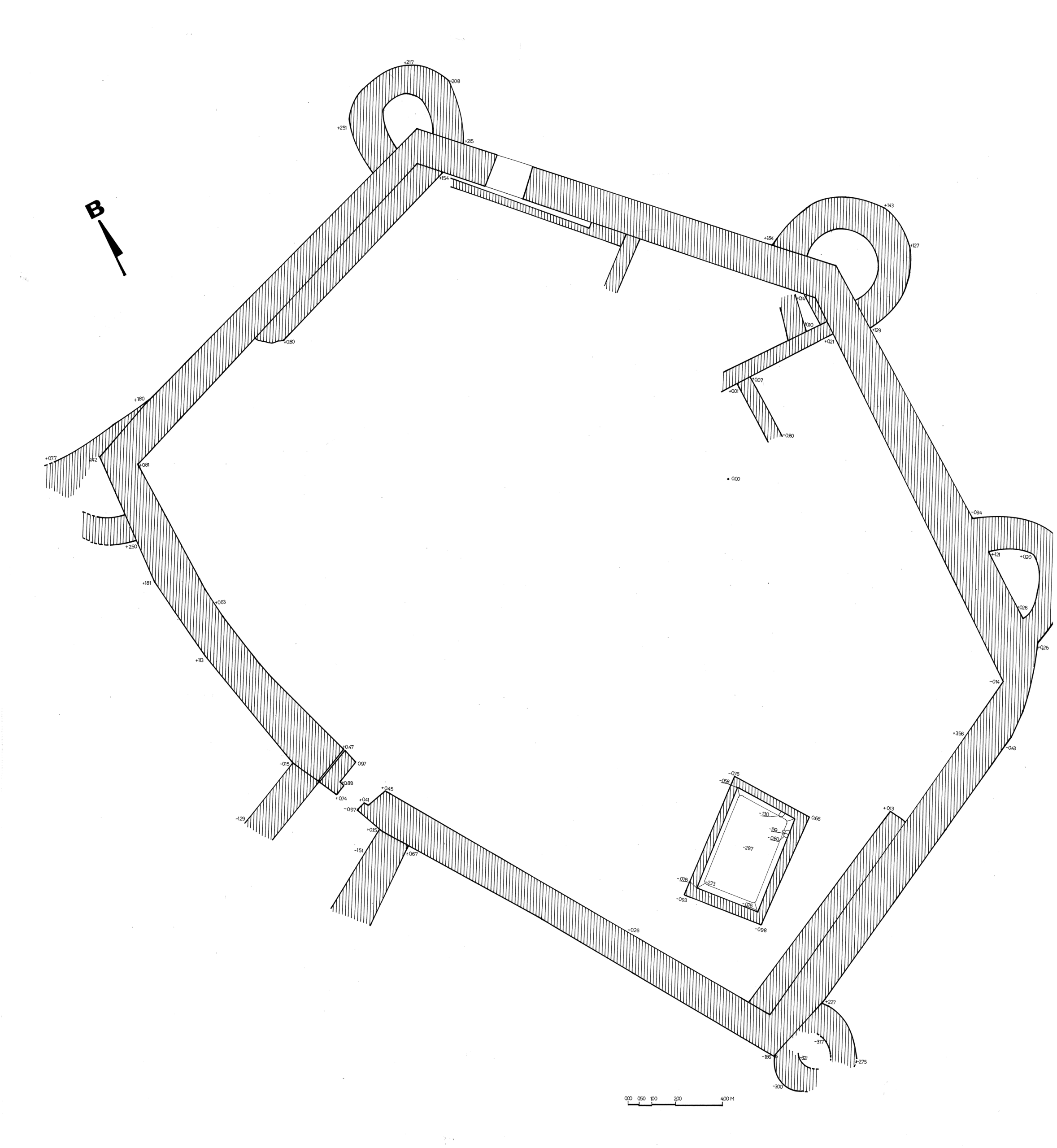 Στη θέση «Τρυπημένη Πέτρα» των Βρασνών αποκαλύφθηκε ένα εντυπωσιακό συγκρότημα με οχυρωματικό χαρακτήρα, συνολικής έκτασης περίπου 4.000 τ.μ., το οποίο εξασφάλιζε την προστασία των εκάστοτε ενοίκων του, ενώ λειτουργούσε και ως χώρος παραγωγής και αποθήκευσης αγροτικών προϊόντων. Χρονολογείται στα χρόνια του Φιλίππου Β΄ (359-336 π.Χ.) και ήταν σε χρήση μέχρι την κατάκτηση της περιοχής από τους Ρωμαίους (168 π.Χ.). Το συγκρότημα έχει πεντάπλευρη κάτοψη και οι επιμέρους χώροι του, που περιλαμβάνουν ελαιοτριβείο, χώρους επεξεργασίας σιτηρών και αποθήκες, οργανώνονται γύρω από μία κεντρική αυλή. Η στρατηγική του θέση, απ’ όπου είναι δυνατή η εποπτεία της γύρω περιοχής, οι μνημειακές του διαστάσεις και ο ισχυρός του περίβολος, που προστατεύεται με ορθογώνιους πύργους, υποδηλώνουν ότι πρόκειται για συγκρότημα με επίσημο και δημόσιο χαρακτήρα.