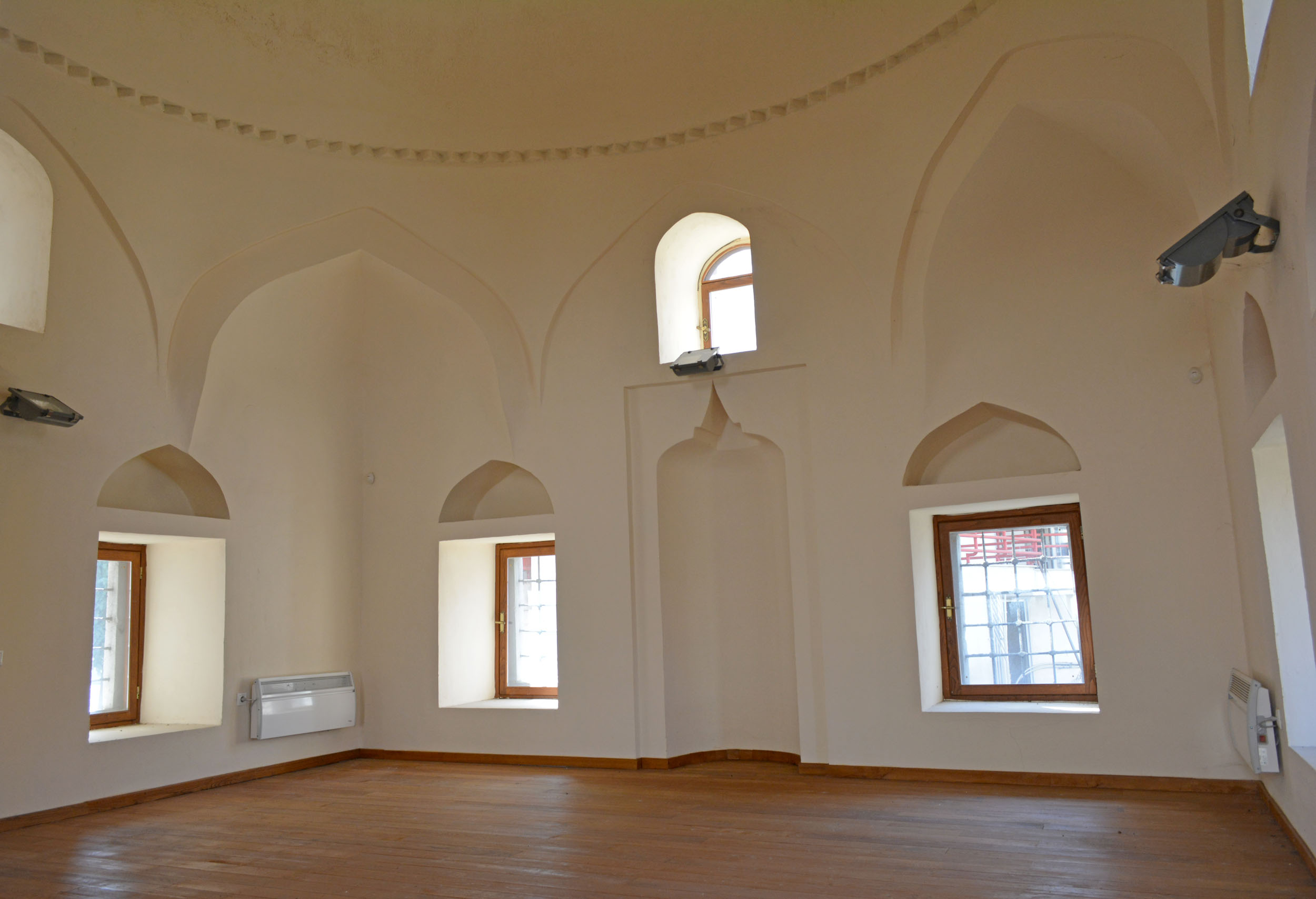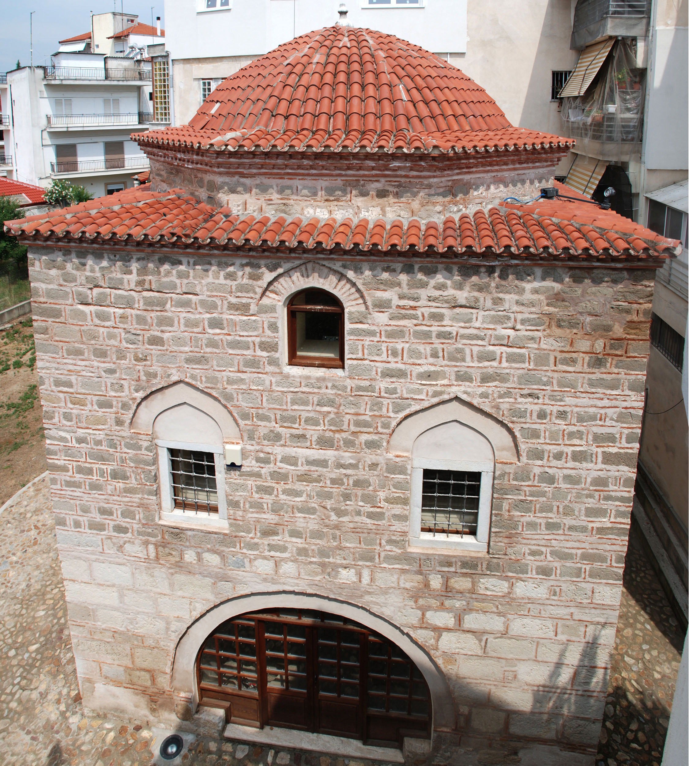 Σε πάροδο της οδού Στράντζης βρίσκεται το διώροφο, σχεδόν τετράγωνης κάτοψης κτήριο, πλευράς περίπου 8 μ., που καλύπτεται με τρούλο εδραζόμενο σε οκταγωνικό τύμπανο. Το κτήριο είναι κτισμένο σύμφωνα με το πλινθοπερίκλειστο σύστημα δόμησης, που οδηγεί σε μία χρονολόγηση στο β΄ μισό του 15ου αιώνα. Η πρόσβαση από το ισόγειο στο επάνω πάτωμα γινόταν εξωτερικά, με ξύλινη σκάλα, η οποία σήμερα δεν σώζεται. Εσωτερικά στον όροφο ανοίγεται ημικυκλικής κάτοψης κόγχη (μιχράμπ). Κατά τη διάρκεια των εργασιών αποκατάστασης του μνημείου (2010-2011) διαπιστώθηκε ότι στο ισόγειο της βόρειας και της νότιας όψης διαμορφώνονται δύο μεγάλα τοξωτά ανοίγματα, που σχηματίζουν μία ανοικτή στοά, από την οποία διέρχεται ένας λιθόστρωτος δρόμος. Το κτήριο είχε παλαιότερα ταυτιστεί με μαυσωλείο (türbe) του Αχμέτ Μπέη Εβρενόσογλου, εγγονού του Γαζή Εβρενός, με βάση ωστόσο τα νεότερα δεδομένα της έρευνας προτείνεται η ταύτισή του είτε με μεχτέπ, σχολείο δηλαδή βασικής εκπαίδευσης, είτε με μεστζίτ (mescit), μικρό δηλαδή συνοικιακό τέμενος. Η λειτουργία του ως μικρού τεμένους, ενσωματωμένου σε ένα μεγαλύτερο συγκρότημα κτηρίων, φαίνεται και η περισσότερο πιθανή.