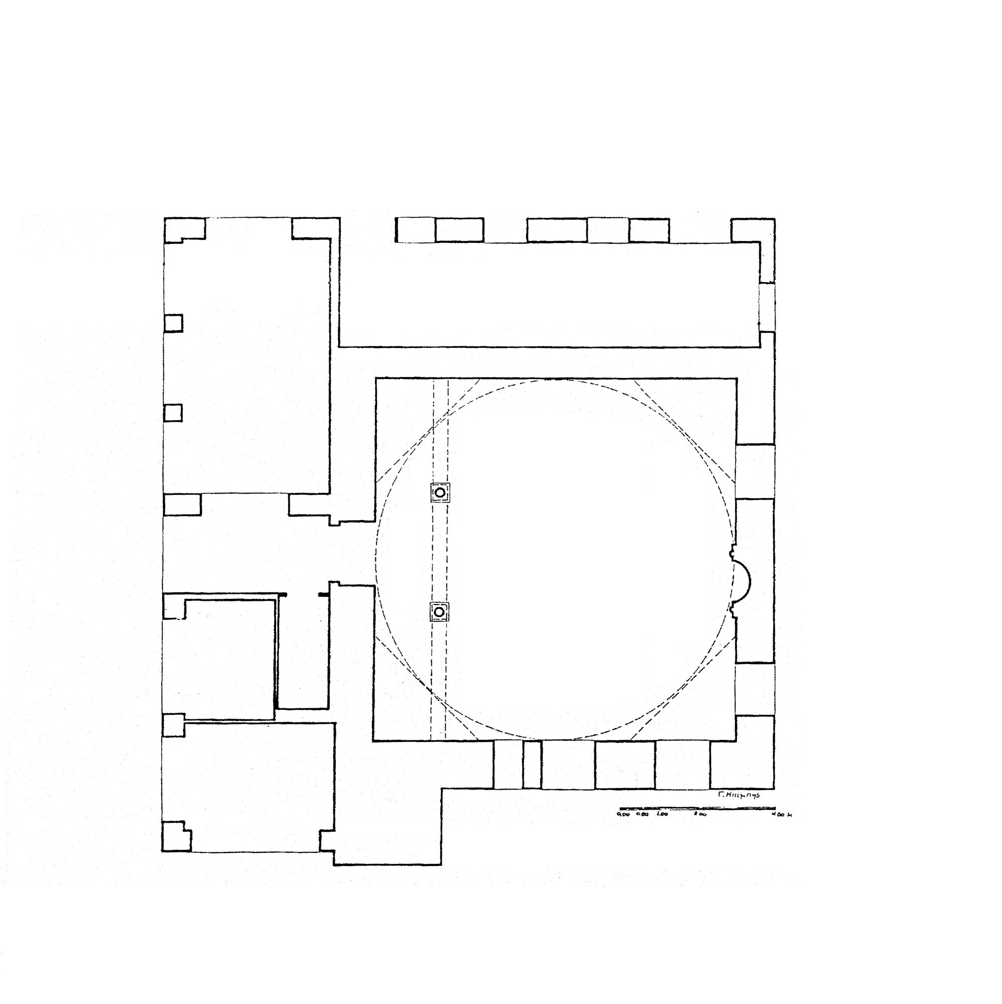 Το κομψό κτήριο, με το χαρακτηριστικό κιονοστήρικτο προστώο στην πρόσοψή του, θεωρείται ότι λειτουργούσε ως βιβλιοθήκη, καθώς περιείχε έναν μεγάλο αριθμό χειρογράφων και έντυπων βιβλίων. Καθώς βρίσκεται έξω από την πύλη της Βορειοανατολικής ακρόπολης, είναι πιθανό να εξυπηρετούσε τις εκπαιδευτικές ανάγκες του μεντρεσέ που είναι κτισμένος στο εσωτερικό της.