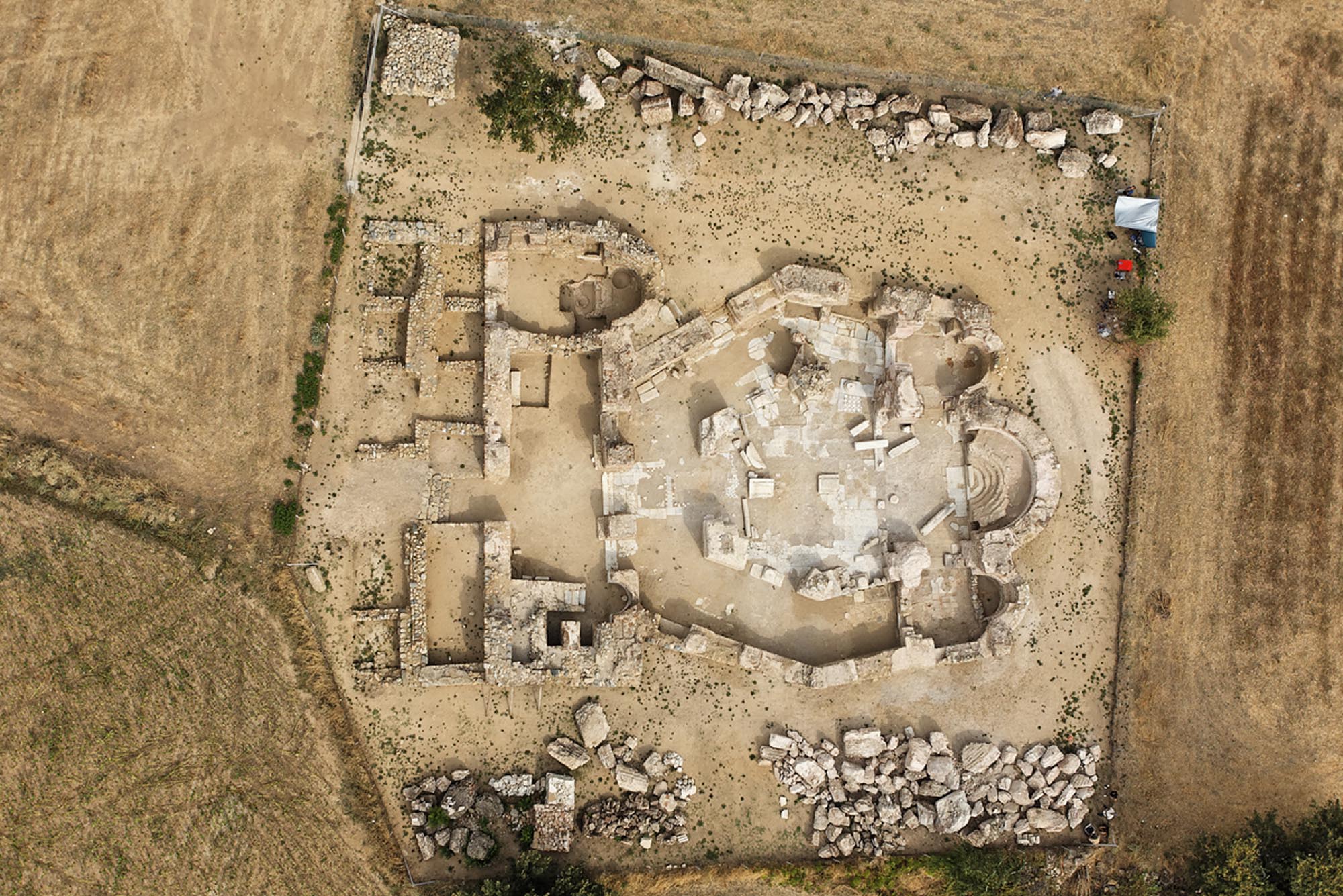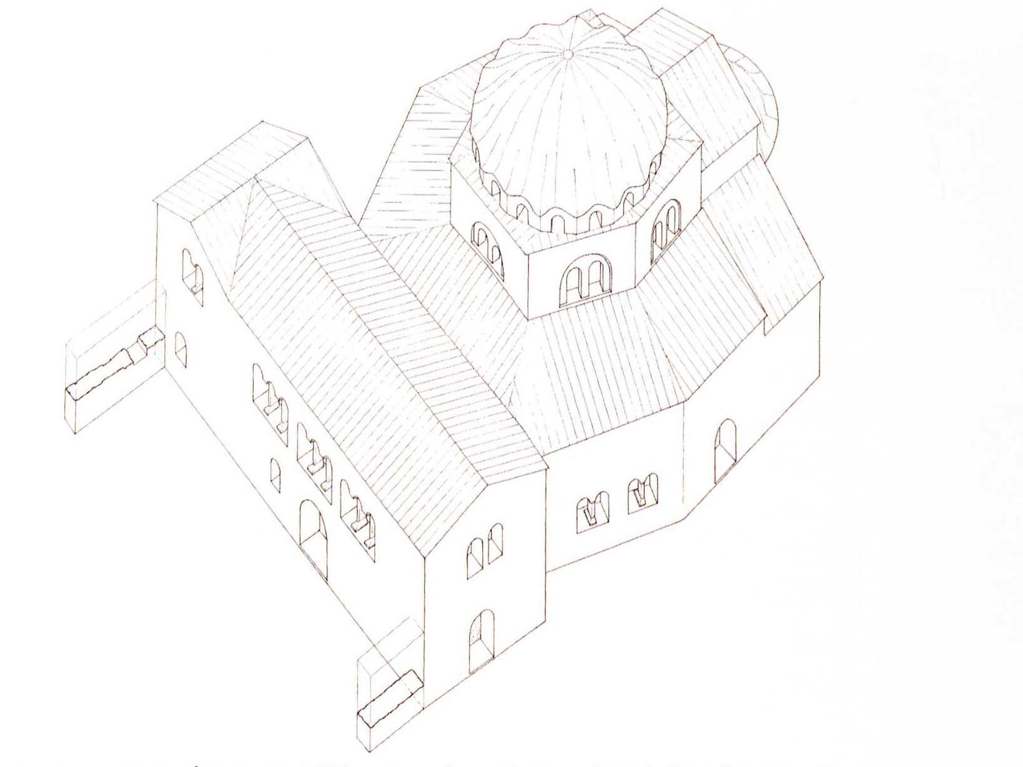 Στον περιβάλλοντα χώρο του ναού αποκαλύφθηκαν δύο στενές και επιμήκεις οικιστικές εγκαταστάσεις, που ανεγέρθηκαν τον 12ο αιώνα η πρώτη και στις αρχές του 13ου αιώνα η δεύτερη, μετά την εγκατάλειψη ή την καταστροφή του ναού. Στα κινητά ευρήματα των δύο χώρων περιλαμβάνεται ένας αξιόλογος αριθμός πήλινων εφυαλωμένων αγγείων του α΄ μισού του 13ου αιώνα, με κοινά χαρακτηριστικά ως προς τον πηλό, το σχήμα και τον διάκοσμο, στοιχείο που υποδεικνύει ότι έχουν κατασκευαστεί από κάποιο τοπικό εργαστήριο κεραμικής, που έδρευε στη Μοσυνούπολη. Την ύπαρξη τοπικού εργαστηρίου κεραμικής επιβεβαιώνει ο εντοπισμός σε μικρή απόσταση από τον ναό πολυάριθμων κυλινδρικών ράβδων όπτησης και ενός κεραμικού κλιβάνου.
