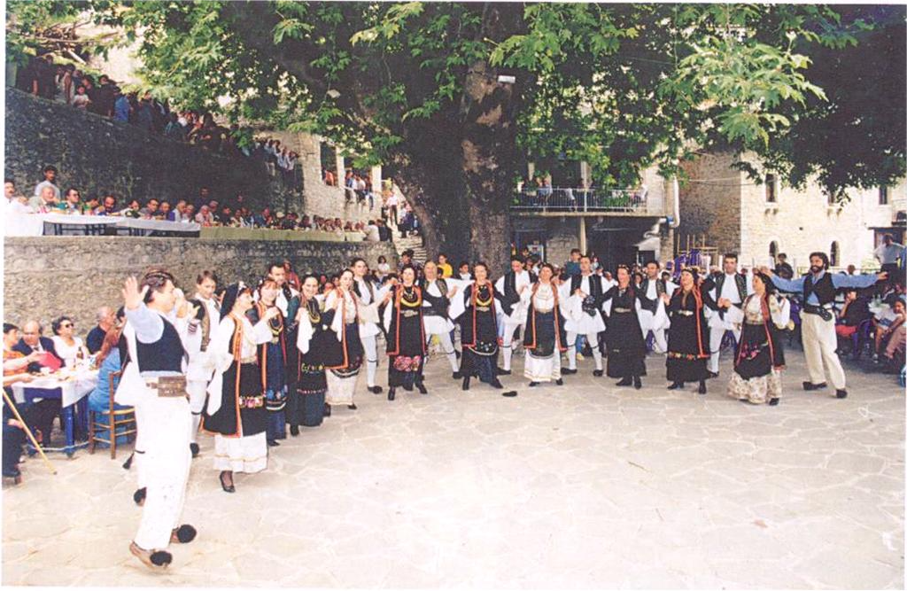 Τον Δεκαπενταύγουστο, στο πανηγύρι στην κεντρική πλατεία του Συρράκου, οι χοροί με τοπικά τραγούδια, αργοί, λιτοί και επιβλητικοί, οργανώνονται σε ομόκεντρους κύκλους, με τις γυναίκες πάντα εσωτερικά. Οι συμμετέχοντες ακολουθούν με ιδιαίτερη προσήλωση συγκεκριμένες συμβολικές πράξεις, που τελούνται με καθιερωμένο τυπικό.