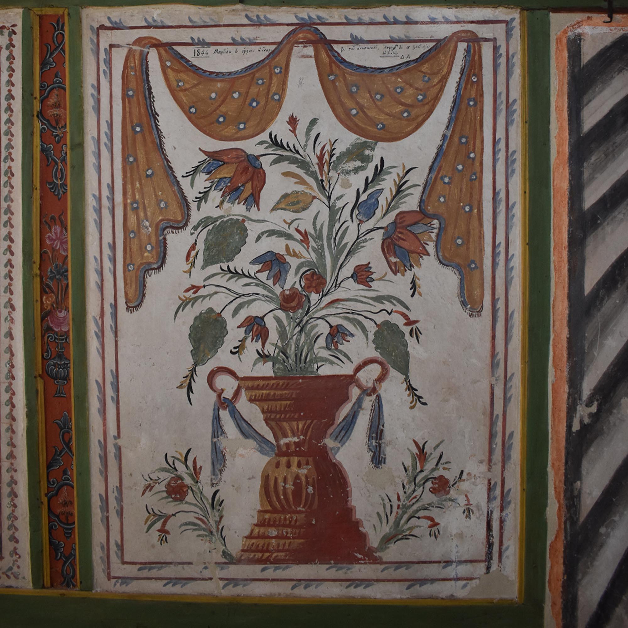 Ανάλογα πλούσιος είναι ο τοιχογραφικός διάκοσμος στα υπόλοιπα αρχοντικά της Σιάτιστας, που περιλαμβάνει απεικονίσεις πόλεων της Ευρώπης, όπως της Φρανκφούρτης, της Βενετίας και της Μαδρίτης, και άλλων θεμάτων, όπως την υδρόγειο σφαίρα και έναν Αυστριακό ουσάρο (αξιωματούχο του στρατιωτικού ιππικού) στο αρχοντικό Μαλιόγκα-Αργυριάδη (1844), που αντανακλούν τον κοσμοπολίτικο και πολυταξιδεμένο χαρακτήρα των κατοίκων της Σιάτιστας. Σε άλλες περιπτώσεις απηχούν τη βαθιά θρησκευτικότητά τους, απεικονίζοντας μοναστήρια του Αγίου Όρους, εκκλησίες και θέματα εμπνευσμένα από την παράδοση της θρησκευτικής ζωγραφικής. Στους τοίχους των αρχοντικών, οι εμπνευσμένοι ζωγράφοι, κύριοι εκφραστές της λεγόμενης λαϊκής τέχνης, επηρεασμένοι τόσο από την ισλαμική τέχνη, όσο και από τα δυτικοευρωπαϊκά καλλιτεχνικά ρεύματα του μπαρόκ και του ροκοκό, ξεδιπλώνουν τη φαντασία τους χωρίς περιορισμό, απεικονίζοντας μια μεγάλη ποικιλία θεμάτων, όπως τοπία με όμορφα δάση, θάλασσες, λιμάνια και καράβια, μνημεία του ένδοξου αρχαίου παρελθόντος, όπως τους Στύλους του Ολυμπίου Διός και την Πύλη του Αδριανού στην Αθήνα, σκηνές κυνηγιού και άλλες σκηνές εμπνευσμένες από την καθημερινή ζωή, αλληγορικές και μυθολογικές μορφές, προσωπογραφίες των ιδιοκτητών, ζώα, πτηνά, ψάρια και άλλα θέματα εμπνευσμένα από τη φύση, όπως το χαρακτηριστικό θέμα του καρπουζιού, από το οποίο λείπει μία φέτα και έχει καρφωμένο πάνω του ένα μαχαίρι.