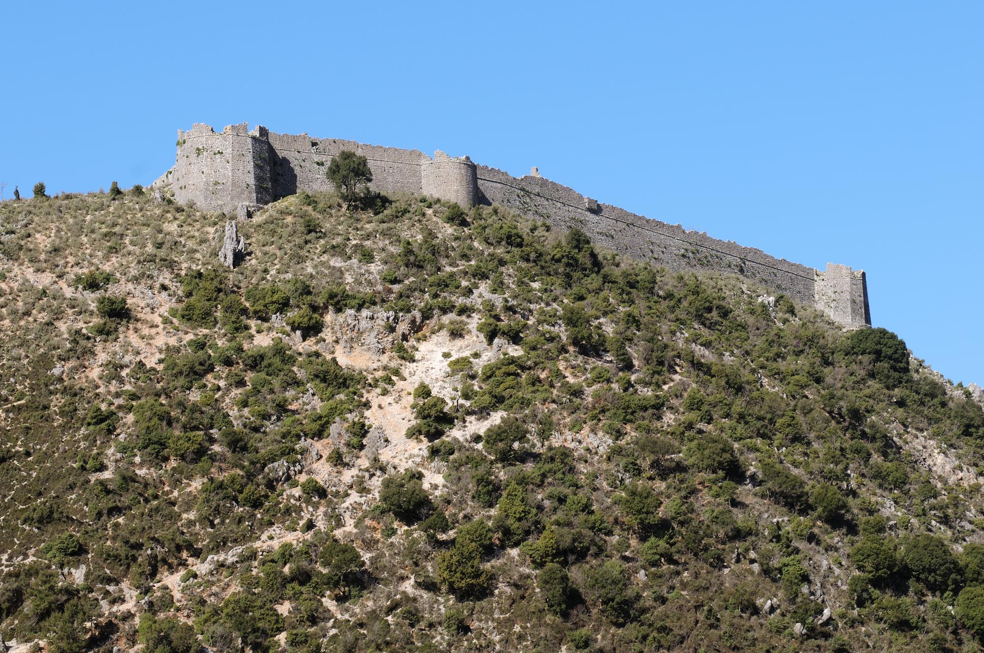 Το μοναδικό σωζόμενο φρούριο από τα εκτεταμένα οχυρωματικά έργα του Αλή Πασά στην ευρύτερη περιοχή του Σουλίου ανεγέρθηκε το 1803 και είναι θεμελιωμένο στην κορυφογραμμή του λόφου πάνω από τον οικισμό της Κιάφας, απ’ όπου έχει άμεση εποπτεία ολόκληρου του οροπεδίου του Σουλίου και της κοιλάδας του Αχέροντα. Έχει ορθογώνια κάτοψη και οι διαστάσεις του είναι περίπου 150 x 50 μ. Προσαρμοσμένο καθώς είναι στο ανάγλυφο του εδάφους, οι μακρές του πλευρές έχουν προσανατολισμό ΒΔ-ΝΑ και είναι παράλληλες με την κορυφογραμμή του λόφου. Το πάχος του οχυρωματικού περιβόλου μειώνεται σταδιακά από τη βάση προς τη στέψη, έτσι ώστε η εξωτερική του παρειά να διαμορφώνεται με κλίση. Ανάμεσα στο κατώτερο κεκλιμένο επίπεδο του τείχους (σκάρπα) και το ανώτερο με τις κανονιοθυρίδες (παραπέτο) διαμορφώνεται μία ταινία ορθογωνικής διατομής (cordone). Η κύρια θύρα εισόδου του κάστρου διαμορφώνεται στη μία στενή, νοτιοανατολική του πλευρά, στην οποία καταλήγει το μονοπάτι που ξεκινά από την Κιάφα. Μία δεύτερη είσοδος ανοίγεται στο πάχος της δεύτερης, βορειοδυτικής στενής του πλευράς, το ανώτερο τμήμα της οποίας έχει καταρρεύσει. Τις δύο μακρές πλευρές της οχύρωσης περιτρέχει εσωτερικός περίδρομος. Εκείνος της βορειοανατολικής μακριάς πλευράς του κάστρου, προς την ομαλότερη πλαγιά του λόφου, είναι ευρύτερος και διαμορφώνεται ψηλότερα σε σχέση με αυτόν της νοτιοδυτικής. Η ίδια πλευρά είναι ιδιαίτερα ενισχυμένη με δύο πολυγωνικούς και έναν ημικυκλικό προμαχώνα που διαθέτουν κανονιοθυρίδες. Η νοτιοδυτική μακριά πλευρά, που είναι θεμελιωμένη προς τη μεριά του γκρεμού, διαθέτει έναν μόνο ορθογώνιο πύργο. Στον εσωτερικό περίδρομο αυτής της πλευράς διατάσσονται παρατακτικά 23 υπόγειες ορθογώνιες αίθουσες, οι οποίες στεγάζονται με καμάρα και πιθανότατα χρησιμοποιούνταν ως αποθήκες, χώροι διαμονής, αλλά και ως καταφύγια. Εσωτερικά, το κάστρο διαιρείται με δύο εγκάρσιους τοίχους σε τρία τμήματα, στο μεσαίο από τα οποία είχε κτιστεί από τον Αλή Πασά ένα σεράι (παλάτι). Σήμερα, εκτός από ελάχιστα οικοδομικά λείψανα, δεν διατηρείται κανένα από τα κτήρια που υπήρχαν στο εσωτερικό του κάστρου.